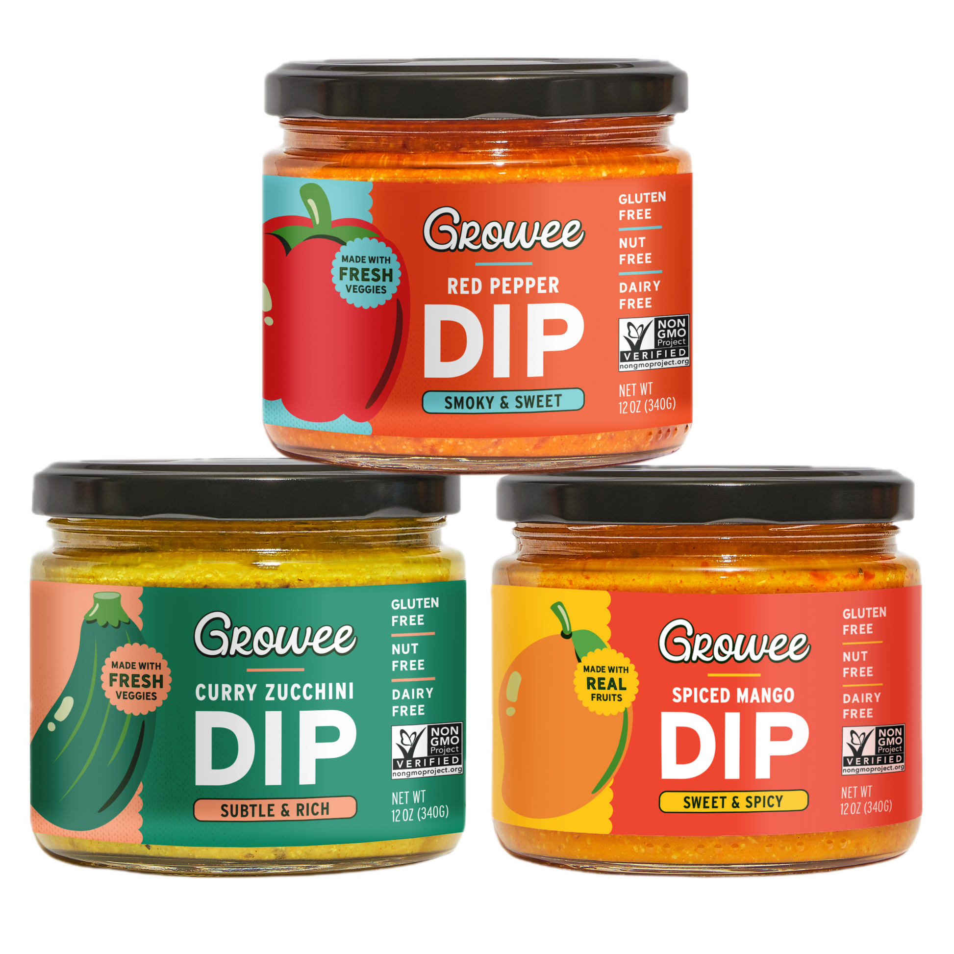 Spiced Mango: Mango, Coconut Milk, Orange Juice, Olive Oil, Sunflower Seeds, Apple Cider Vinegar, Coconut Sugar, Chili Powder, Lemon Juice, Sea Salt, Curry Powder (Turmeric, Spices, Garlic, Fenugreek), Arrowroot Flour
